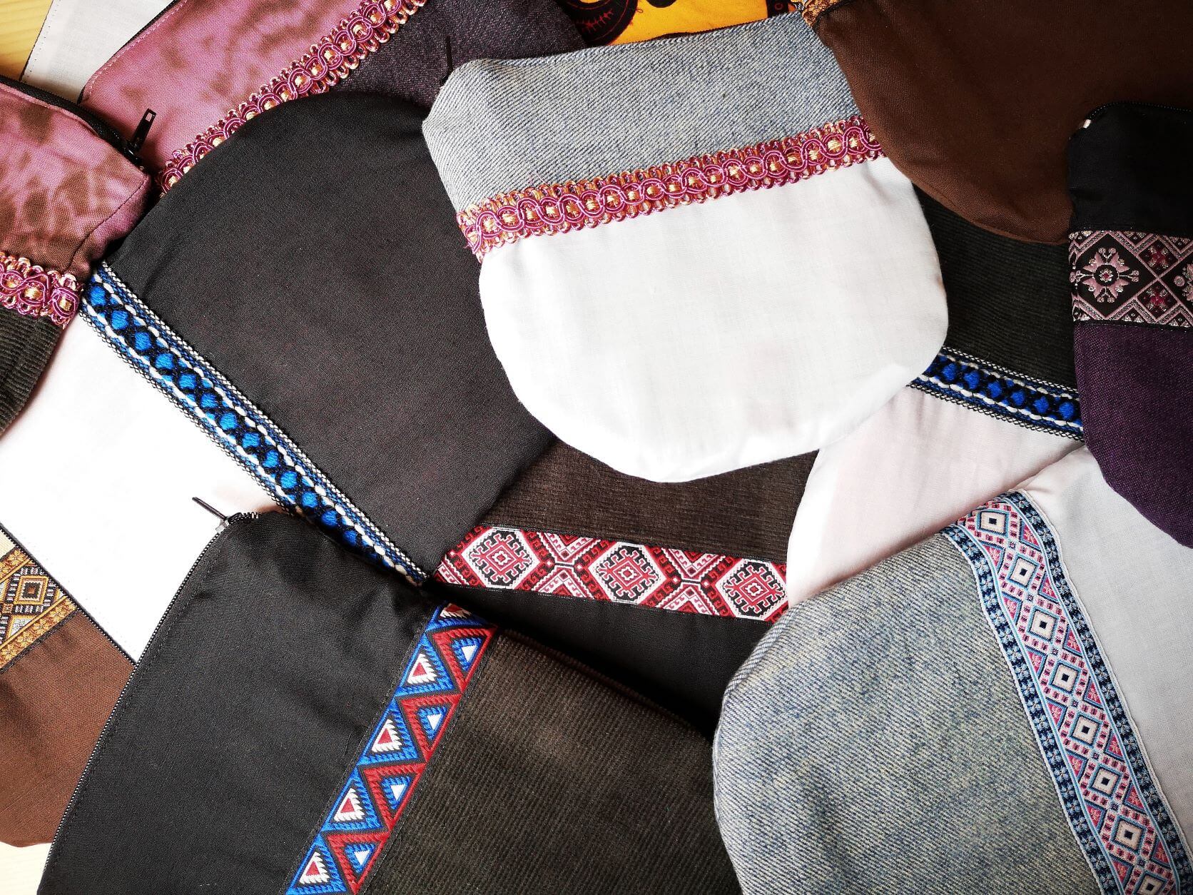 Die Beutel sind aus Reststoffen genäht. Nur Borte, Garn und Reißverschluss wurden extra dazu gekauft. Sie sind daher genauso einzigartig wie meine Becher.